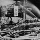戦後の火災では、昭和39年7月14日に起こった勝島倉庫の爆発火災が参加者全員の記憶に残っていました。茂木さん自身も消防団員として、爆発によって吹き飛ばされ、九死に一生を得た火災として忘れられない事だそうです。消防職員18名、消防団員1名が殉職され、158名が重軽傷を負う大惨事でした。現場に駆けつけたとき倉庫の管理者が爆発物はないとういうので、安心して消火作業にかかった直後の爆発でした。今でも7月14日にはお参りに行かれるそうです。
