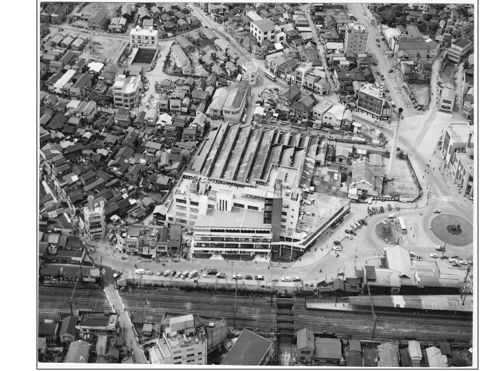 貴重な写真です。まず、工場の煙突があります。そして、立会川がまだ見えています。また、左上にプールもあります。