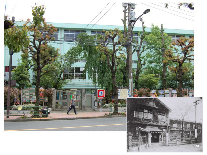 学校ができたのが明治8年、鉄道の開通が明治5年ですが、大森駅が開業したのも明治8年。寺子屋が私塾となり、明治8年5月15日、私塾が第二中学区第19番公立小大井学校となる。「大井第一小学校」 (大井6一1ー32)